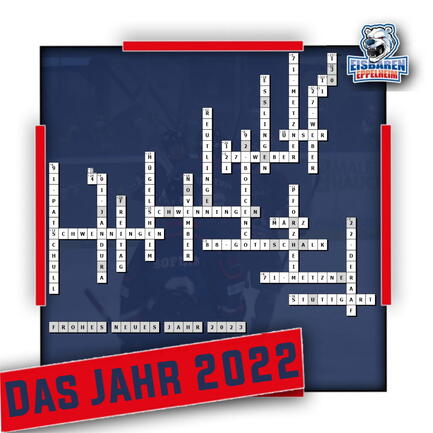 Die richtige Lösung unseres Jahresrückblicks-Rätsel ist natürlich das, was die Eisbären ihren Freunden und Fans wünschen: "FROHES NEUES JAHR 2023". Das war wohl nicht so schwer zu erraten, doch die einzelnen Lösungen waren teilweise nicht ganz so offensichtlich, daher findet ihr nachfolgend die Auflösung unserer 30 kleinen Statistik-Rätsel.