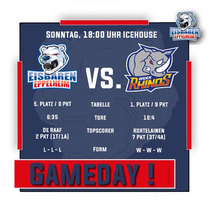 Nach dem enttäuschenden Saisonstart stehen den Eisbären nun noch schwerere Wochen bevor. Diese starten mit dem Heimspiel gegen den Tabellenprimus Baden Rhinos, der bisher all seine Aufgaben erfolgreich absolvieren konnte. Ein weiterer Prüfstein für unsere Eisbären, die als klarer Underdog in das Duell gehen werden.